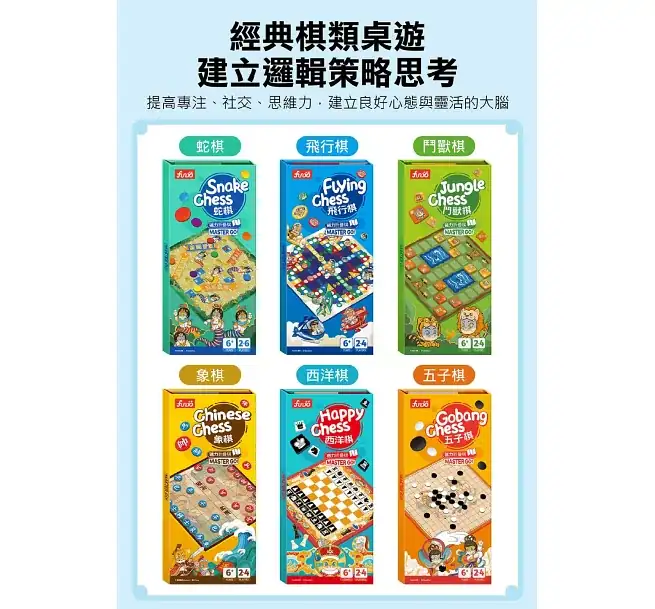 在抓握、拿取棋子時,能促進孩子的手眼協調,並強化腦力開發。